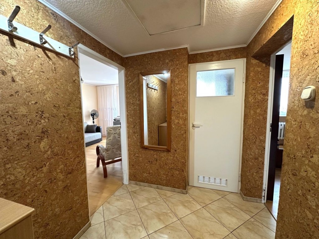 przedpokój 4,7 m + pawlacz nad całym korytarzem, ściany wyłożone praktycznym korkiem.
