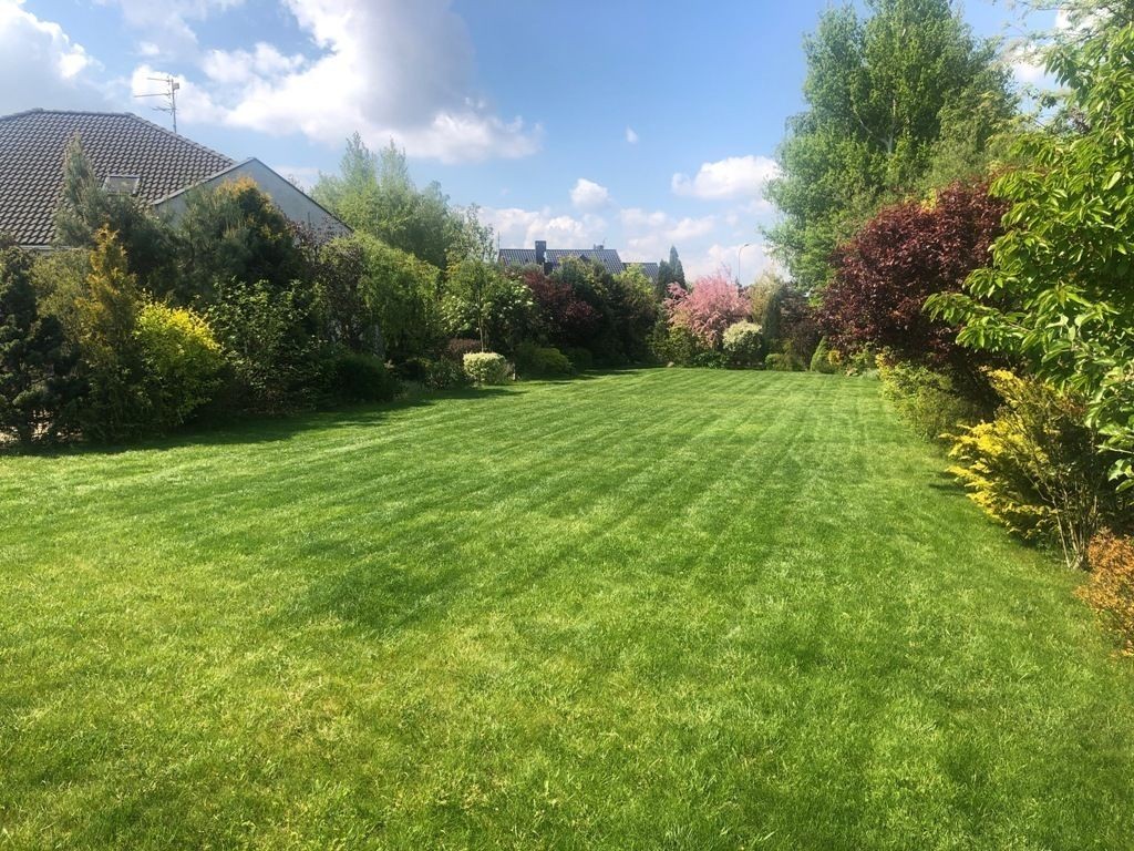 Duży ogród w kształcie prostokąta z ciekawymi roślinami, oświetlony.Można na terenie ogrodu zbudować basen lub boisko. Na terenie ogrodu domek ogrodowy, dwie studnie z ujęciem wody na głębokości 7 oraz 11m.