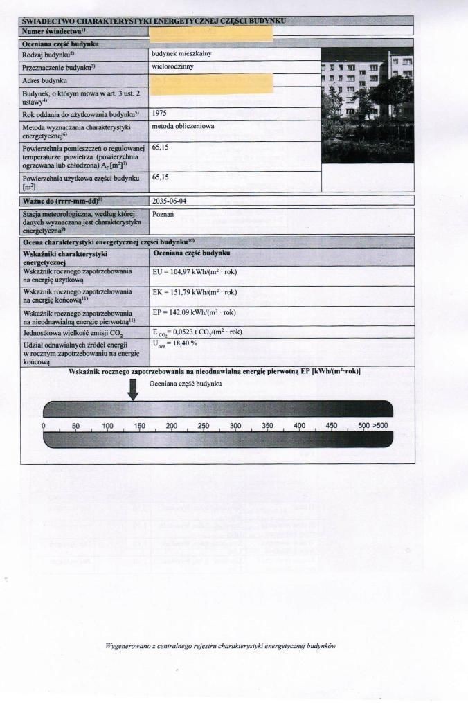 W załączeniu Świadectwo Charakterystyki Energetycznej.